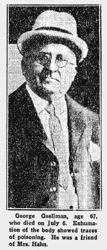 Nou heeft ze de smaak te pakken. Jacob is nog niet begraven of ze heeft haar volgende slachtoffer al ontmoet, de 67-jarige George Gsellman. Ze vergiftigt hem door arseen door zijn eten te mengen. Op 6 juli 1937 sterft hij. Helaas voor Anna Marie had George geen geld. Hij had slechts $100,- op zijn rekening staan, wat ze meteen vergokte.